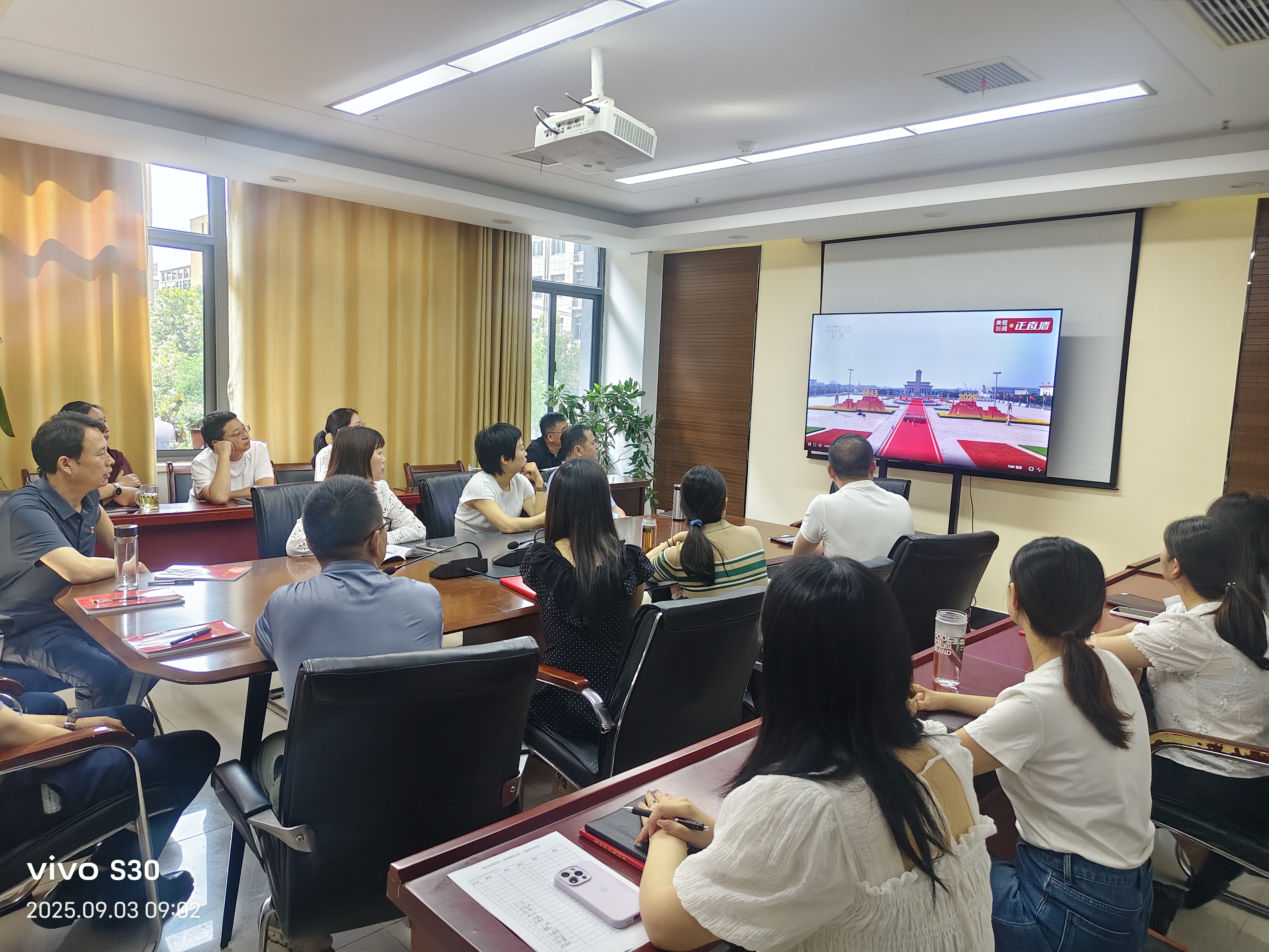 阅兵盛况,气势恢宏,振奋人心。全体人员聚精会神收看在北京天安门广场举行的盛大阅兵式。习近平总书记的重要讲话掷地有声、激荡胸怀:“中国人民以铮铮铁骨战强敌,以血肉之躯筑长城”“中华民族伟大复兴势不可挡!人类和平与发展的崇高事业必将胜利!”现场及屏幕前的每一位同志都倍感振奋,信心满怀。阅兵场上,军事航天部队、网络空间部队、信息支援部队三支新质作战力量首次威武亮相,各种新型装备集中展示,尽显国之重器、军之威仪。人民子弟兵“听党指挥、能打胜仗、作风优良”“和平必胜、正义必胜、人民必胜”的铮铮誓言响彻云霄,让全体观礼同志深感无上自豪与深深震撼。